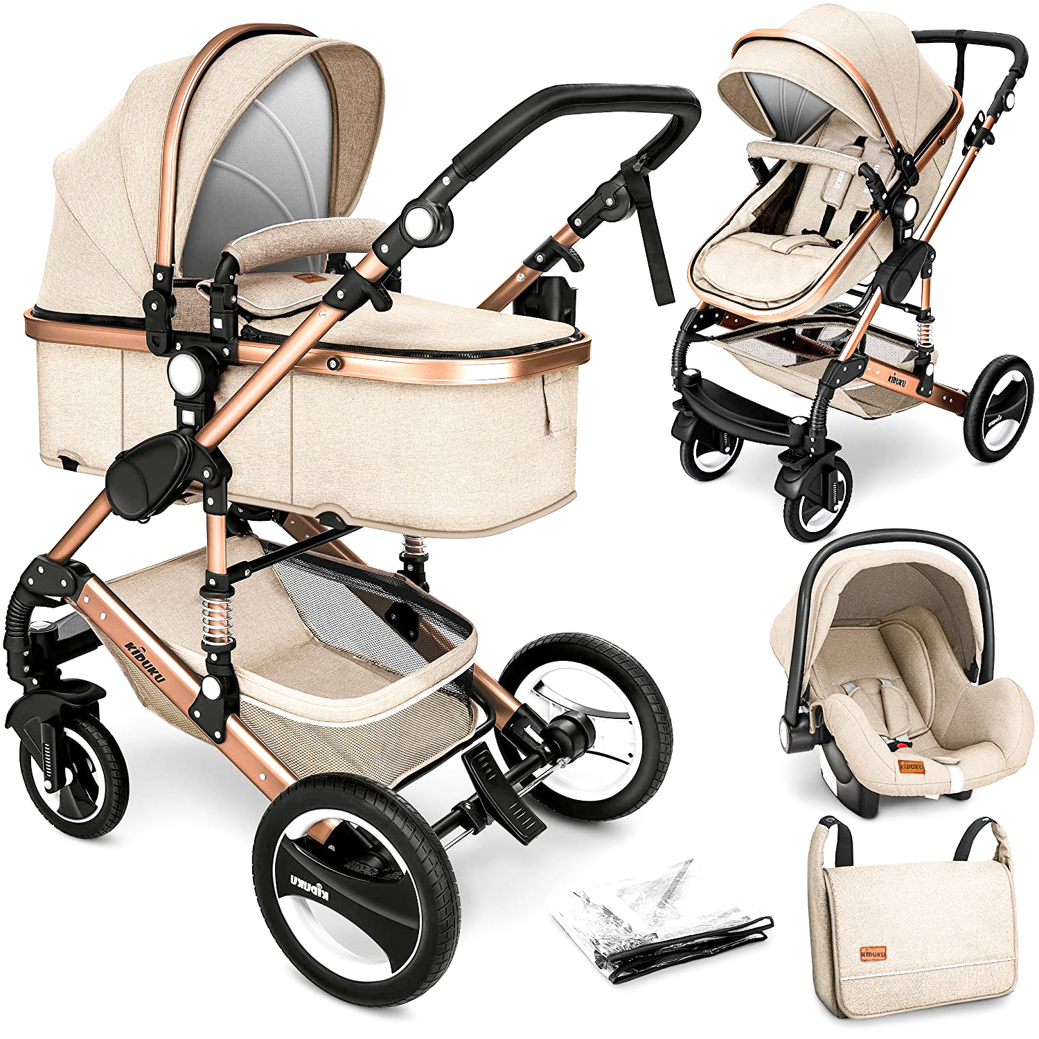 Kiduku Kombinovaný kočárek 3v1 Béžový - 2. JAKOST