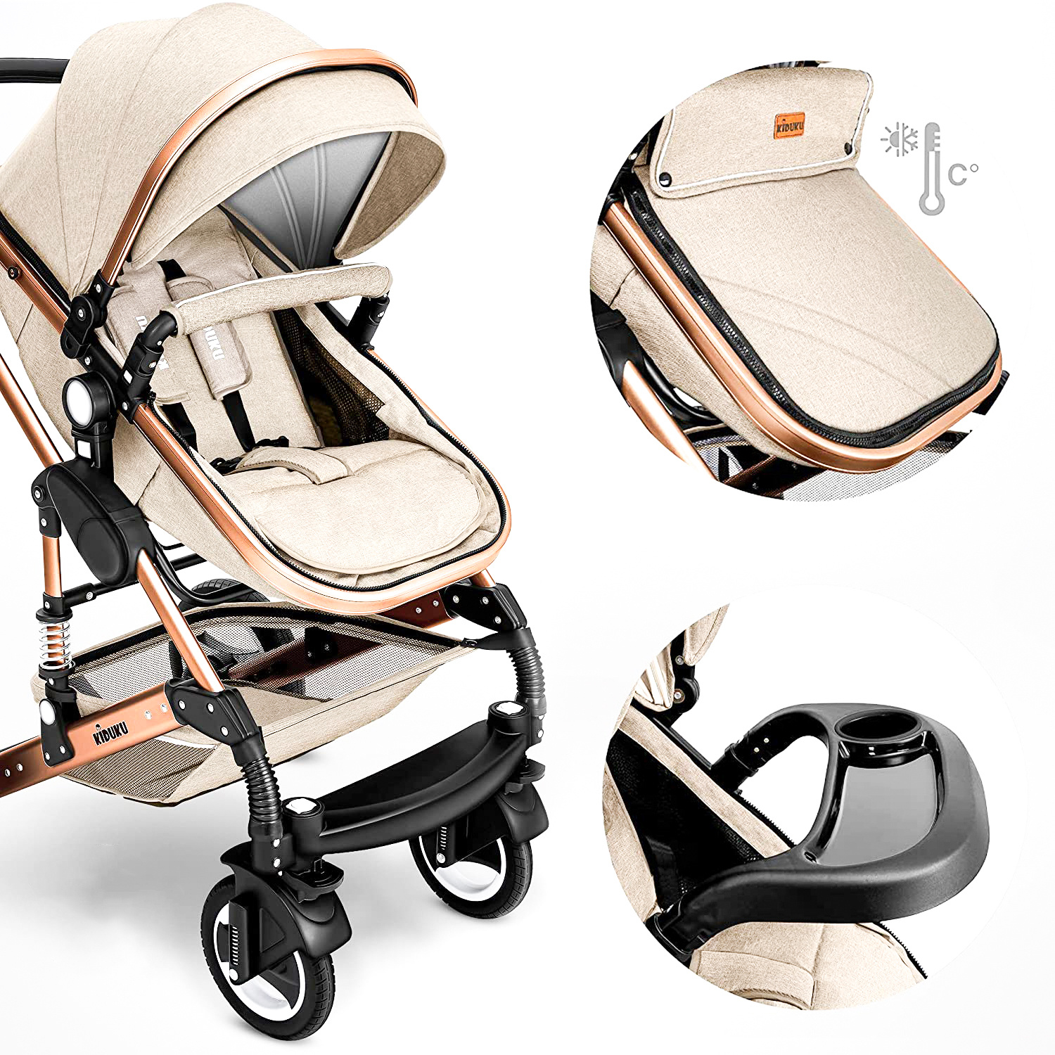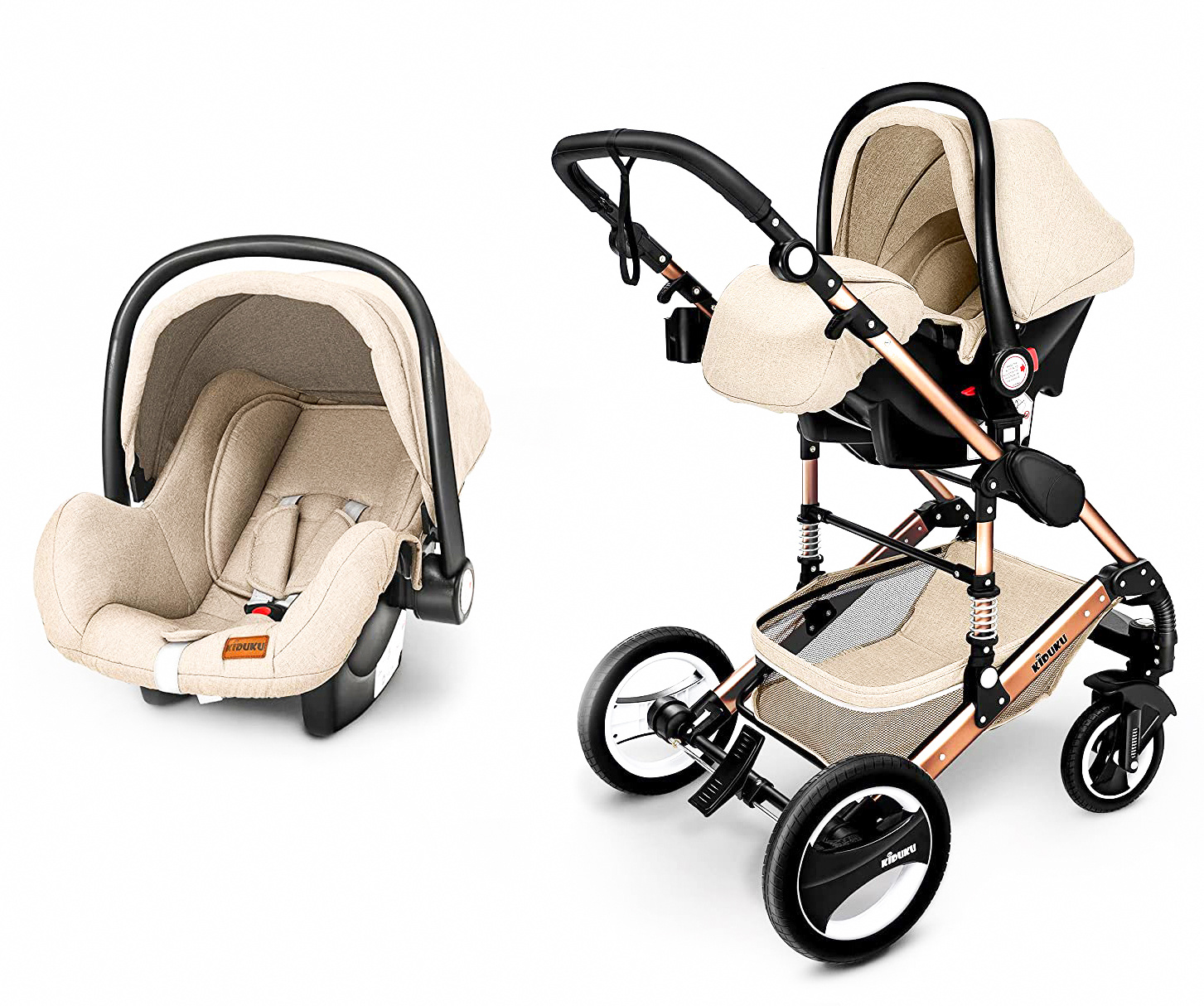 Kiduku Kombinovaný kočárek 3v1 Béžový