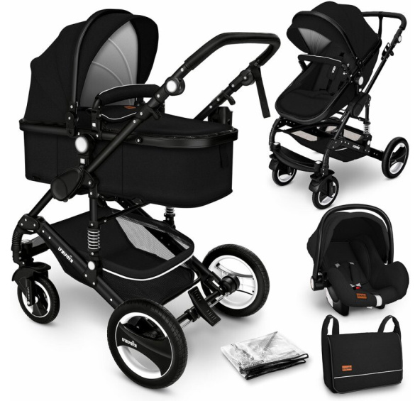 Popis produktu Kiduku Kombinovaný kočárek 3v1 Černý/Černý