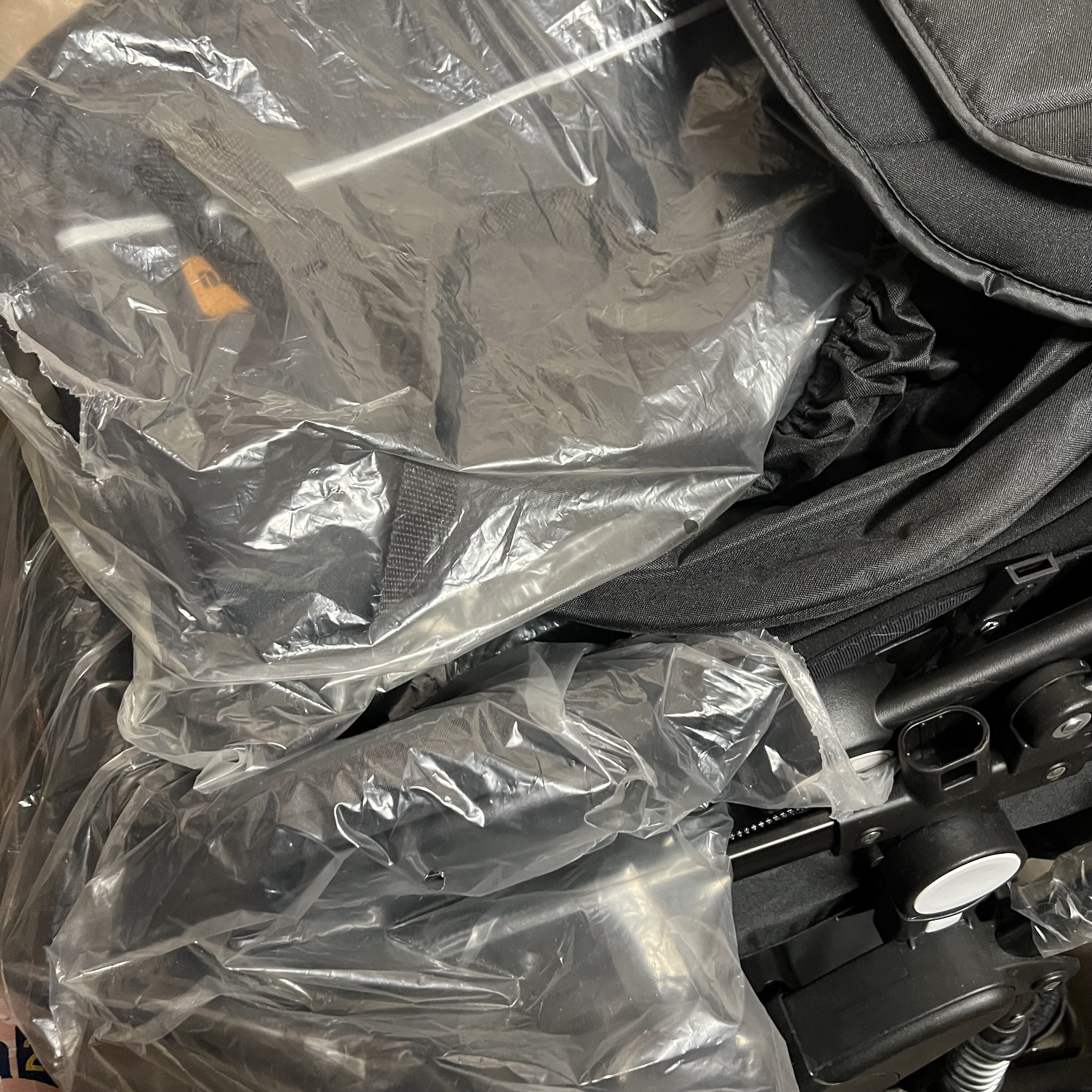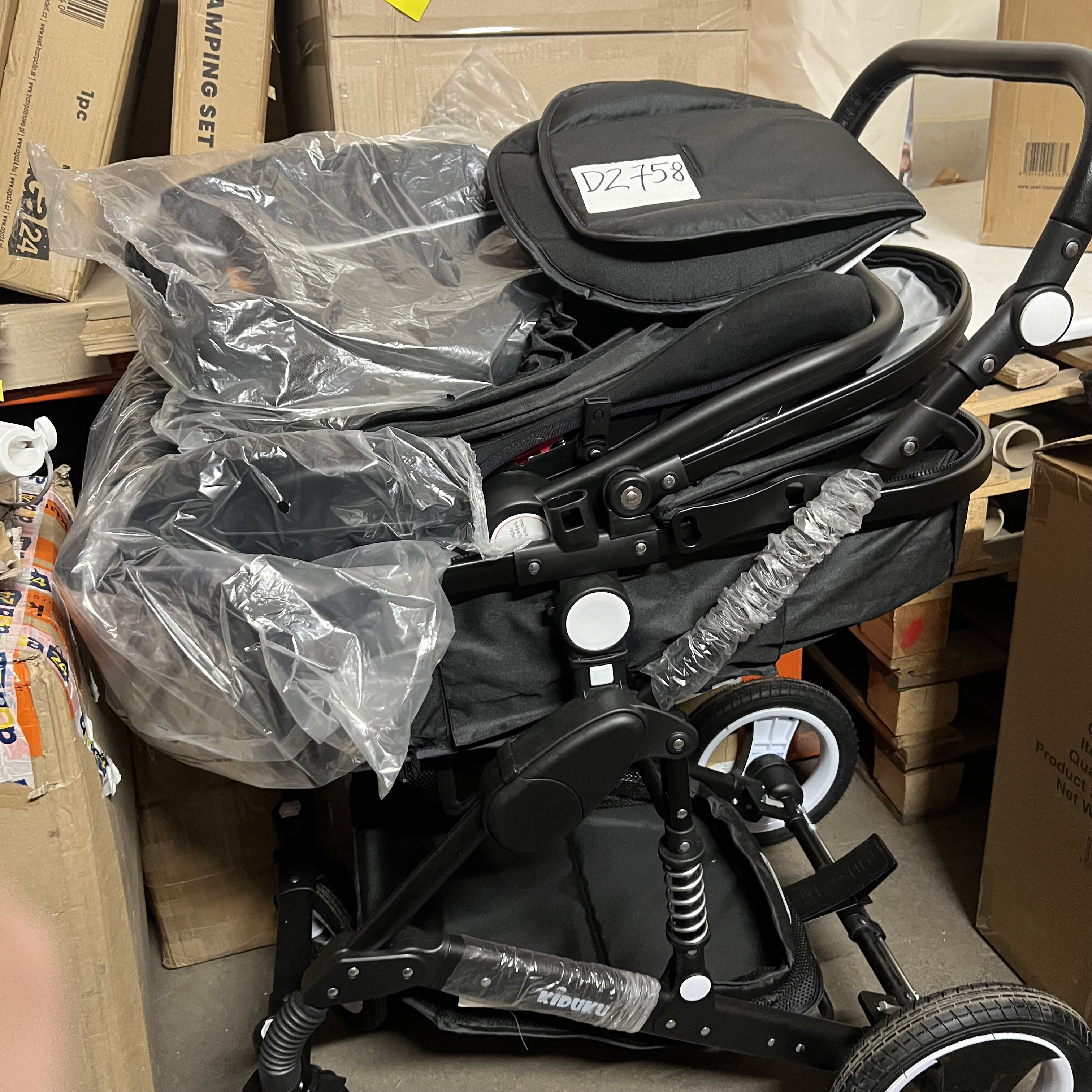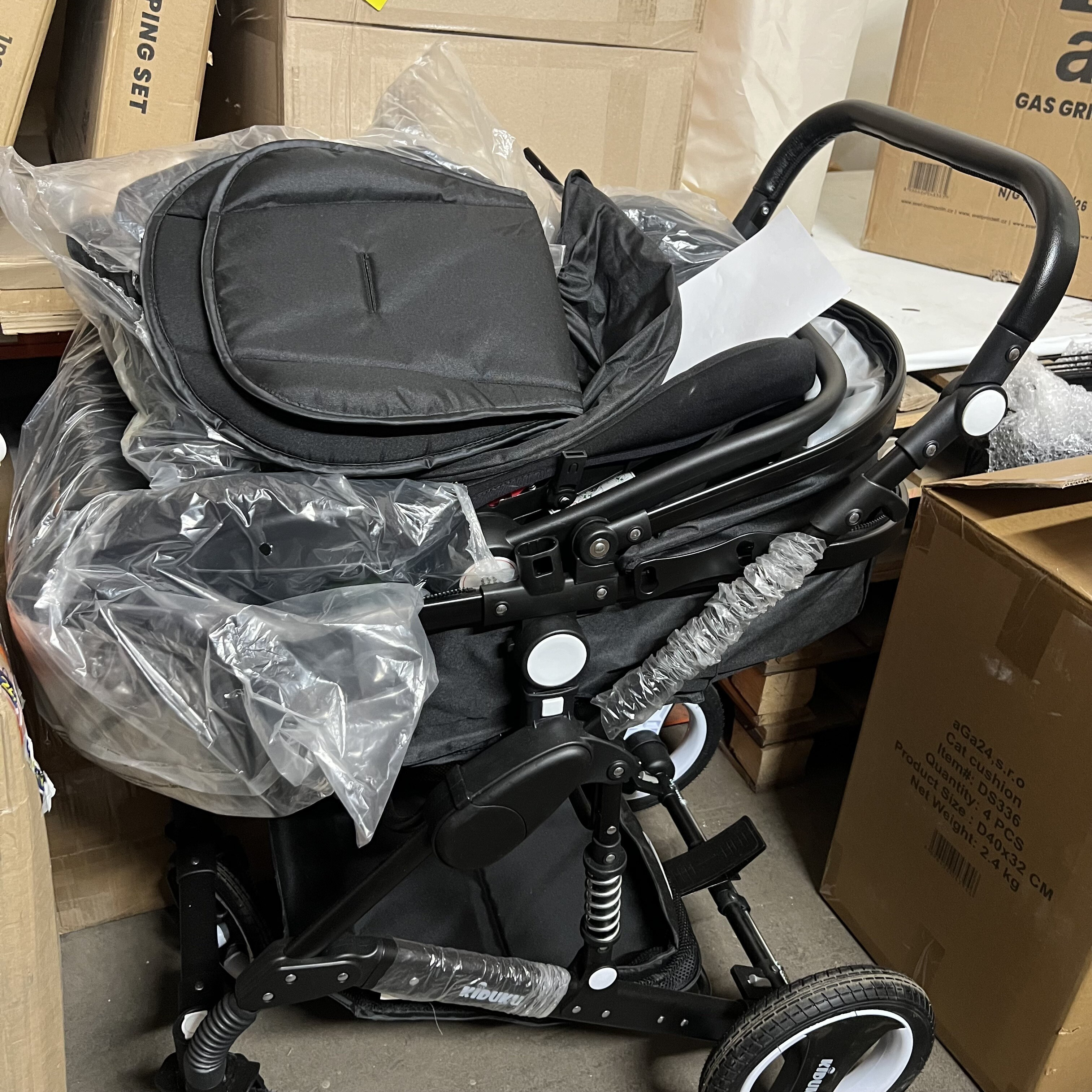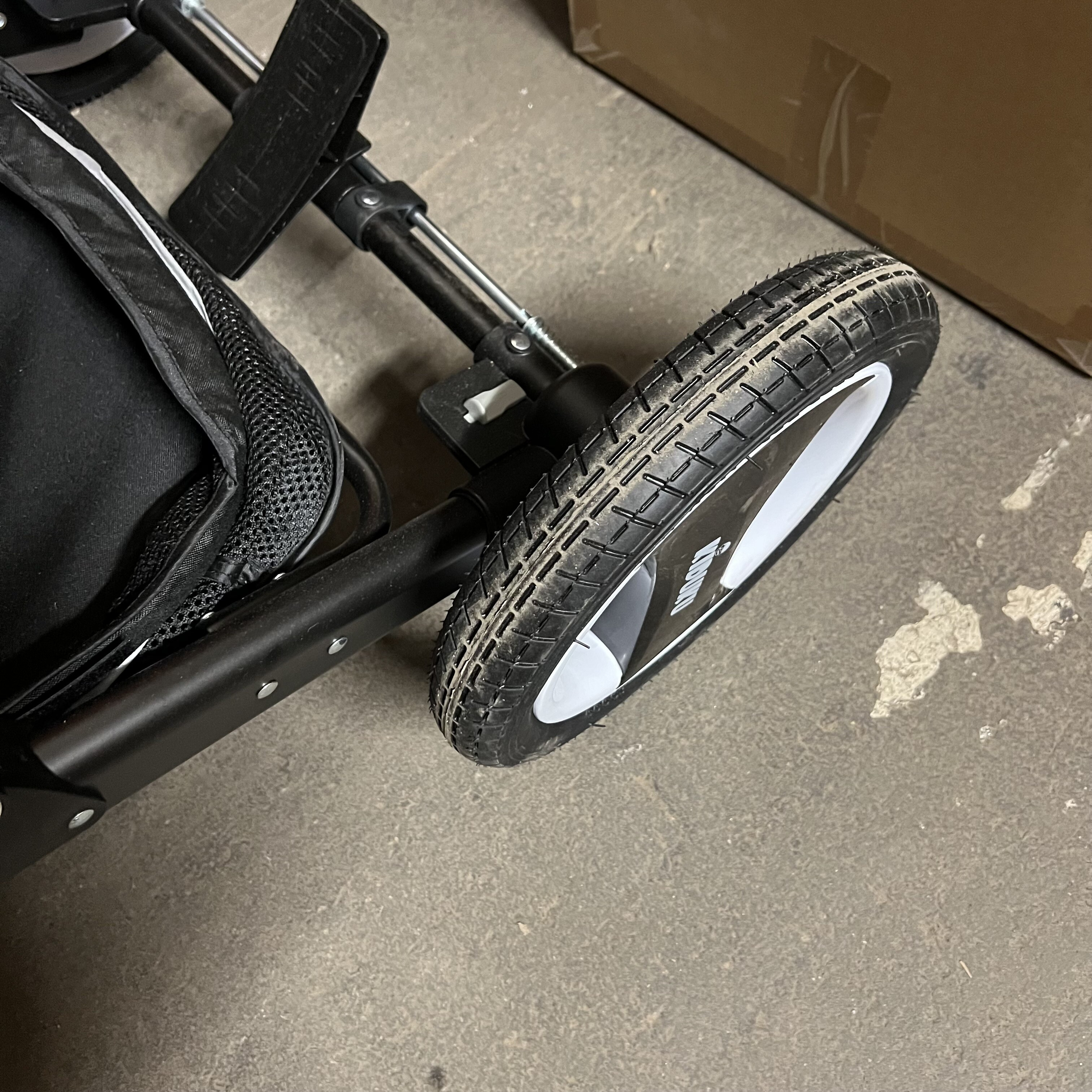 Vrácený kočárek, s ochrannou fólií, bez originálního obalu. Kola jsou špinavá.