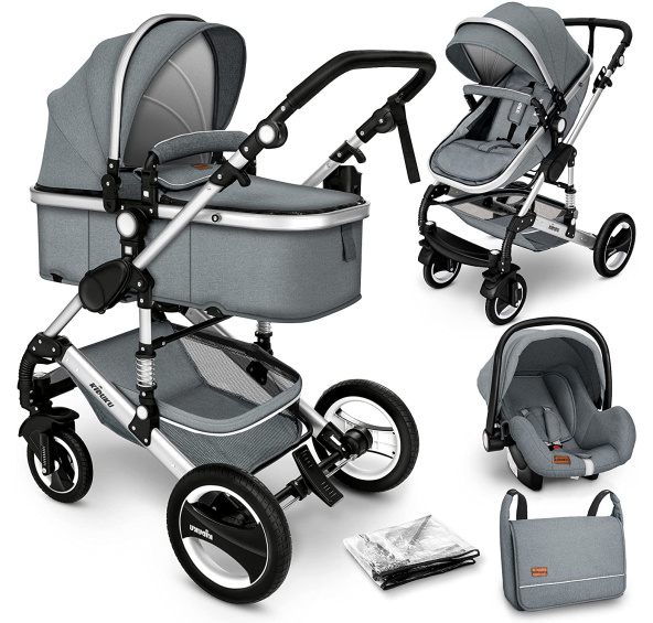 Popis produktu Kiduku Kombinovaný kočárek 3v1 Šedý