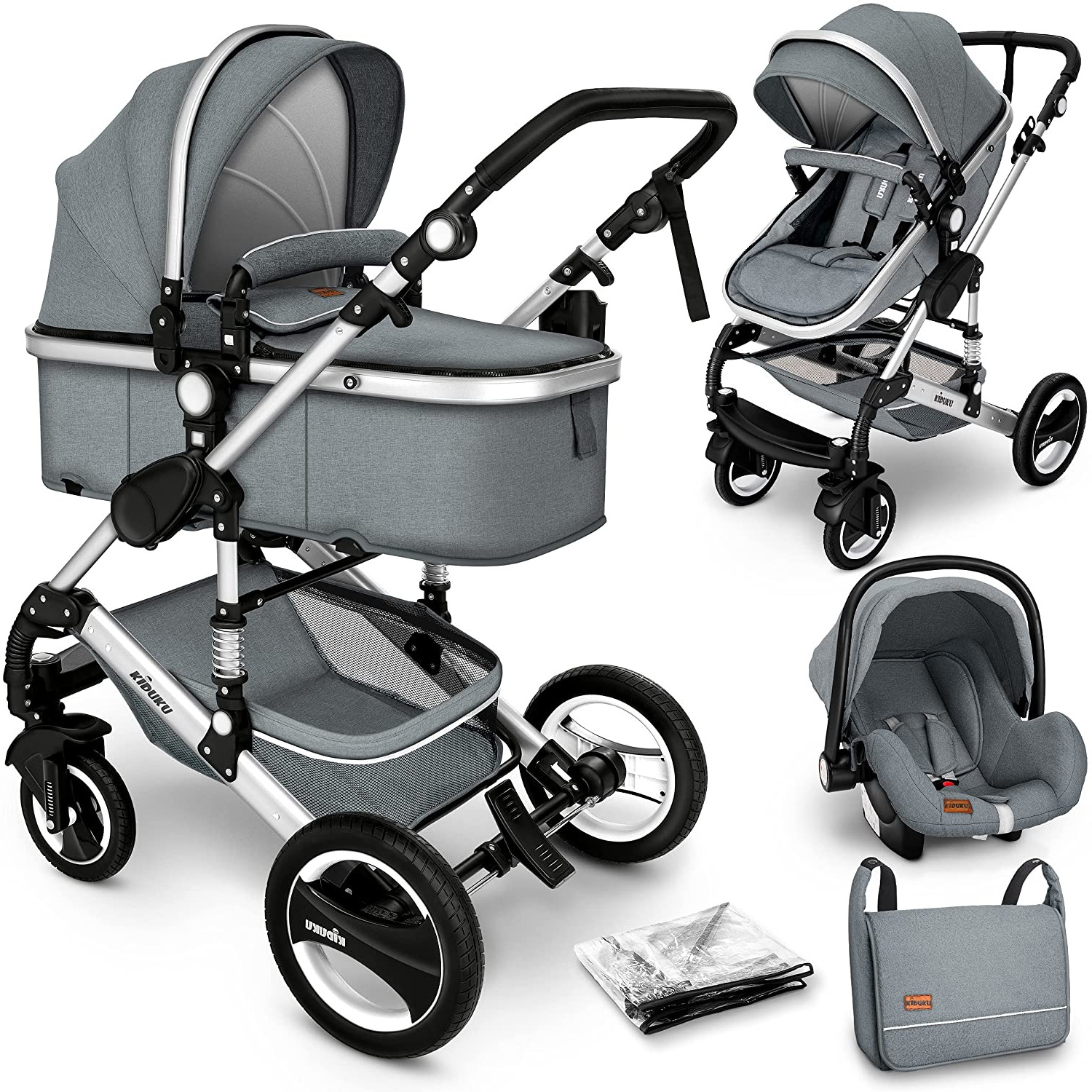 Kiduku Kombinovaný kočárek 3v1 Šedý 2DZ079