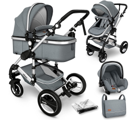 Kiduku Kombinovaný kočárek 3v1 Šedý