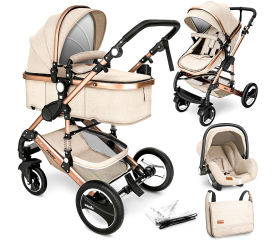 Kiduku Kombinovaný kočárek 3v1 Béžový