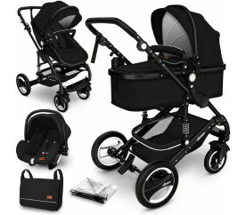 Kiduku Kombinovaný kočárek 3v1 Černý/Černý