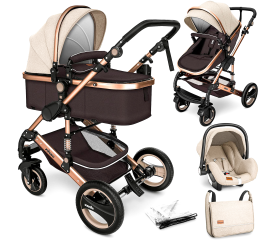 Kiduku Kombinovaný kočárek 3v1 Béžový/Hnědý