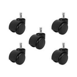 - UNIVERZÁLNÍ - sada obsahuje 5 koleček, která umožní výměnu celé pětihvězdičkové základny pro kancelářské, hráčské, otočné nebo psací židle . Sada se hodí pro většinu křesel dostupných na trhu s průměrem vřetena 11 mm. Montáž "zacvaknutím" je rychlá a snadná, stačí stisknout čep .