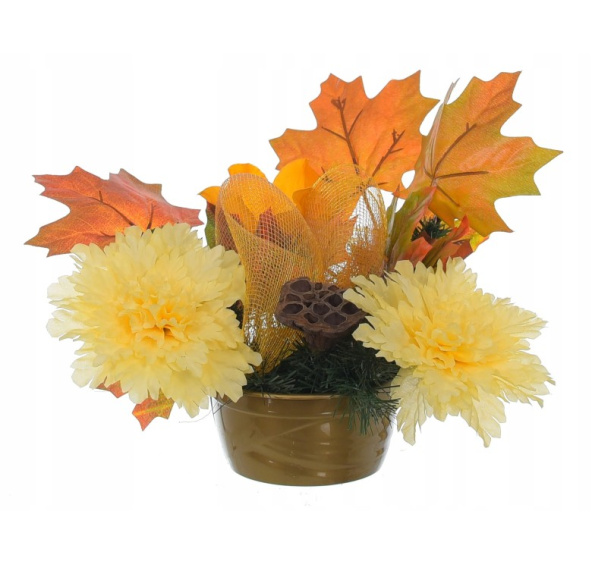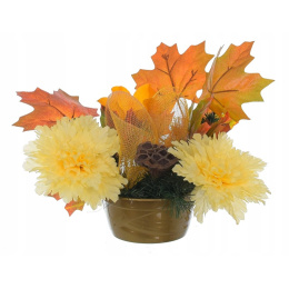 Popis produktu Náhrobní kompozice rákos - chryzantémy, podzimní listí - 3 květy