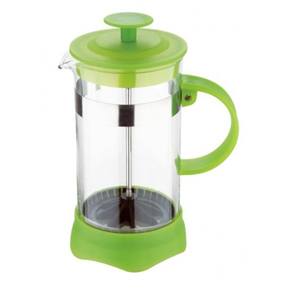 Popis produktu Konvička na čaj a kávu French Press 600 ml zelená - Renberg-Materiál: žáruvzdorné sklo/plast-zelená barva-unikátní design-sklo garantováno do 120°C-objem 600 ml