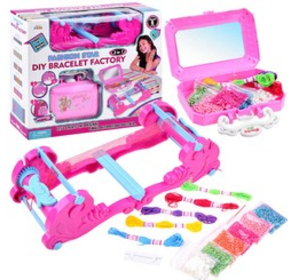 Tkalcovský stav na výrobu náramků + plastový kufr/taška je pro všechny malé talentované kostymérky, které baví umění a řemesla. Vlastnoručně vytvořené šperky v podobě náramků, korálků budou vždy nejkrásnější a nejcennější. Kromě stroje na tkaní náramků obsahuje sada také barevný moulin, perleťové korálky, šňůru perel, kterou lze použít jako řemínek na kabelku, ale dobře poslouží i jako ozdoba oděvu. Kreativní sada umožní každé dívce vyrobit si vlastní náramky s lesklými korálky, které mohou být skvělým dárkem pro maminku, sestru nebo kamarádku.