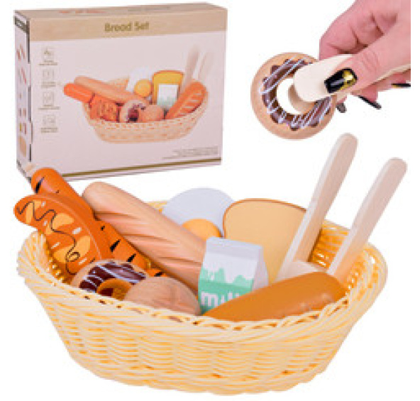 Sada s pečivem je skvělý způsob, jak rozvíjet představivost a manuální dovednosti u dětí. Hra na domácnost, vaření a napodobování dospělých podporuje učení se každodenním činnostem a poznávání názvů potravin. Barevný košík naplněný dřevěným pečivem se jistě stane oblíbenou hračkou malého dítěte, poskytující mu hodiny vzdělávací zábavy.