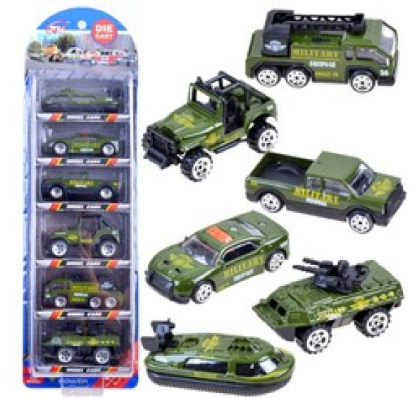 Sada 6 autíček - armáda je tou nejlepší volbou pro každého, kdo se nebojí výzev a statečně čelí jakémukoli nebezpečí, stejně jako vojáci. S pomocí této sady bude každý chlapec schopen zachránit své hračky z jakýchkoli potíží. Kovová autíčka mají plastové pohyblivé doplňky.