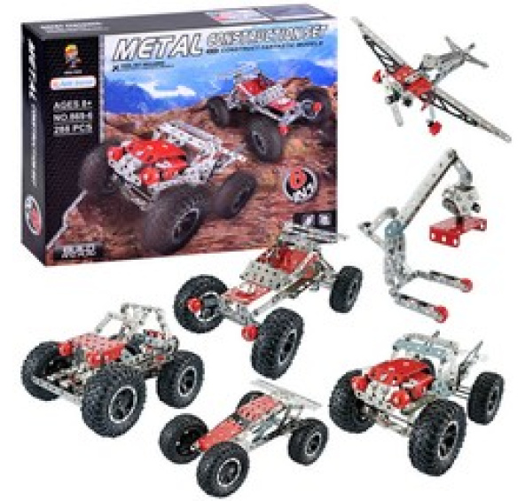 Kovové stavebnice jsou ideální pro každého malého kutila nebo technika. Sada kovových dílů různých tvarů vám umožní postavit terénní auto, závodní vůz nebo letadlo. Změna konceptu je samozřejmě vítána, vše záleží na fantazii a schopnostech dítěte.