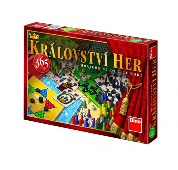 Obsah: 6 oboustranných herních plánů 1 sada šachových figurek 75 figurek v šesti barvách 30 kamenů ve dvou barvách 6 hracích kostek s oky 1 hrací šestibarevná kostka 28 kamenů domina 4 různobarevné figurky husiček 1 sada mariášových karet 1 návod ke hrám
