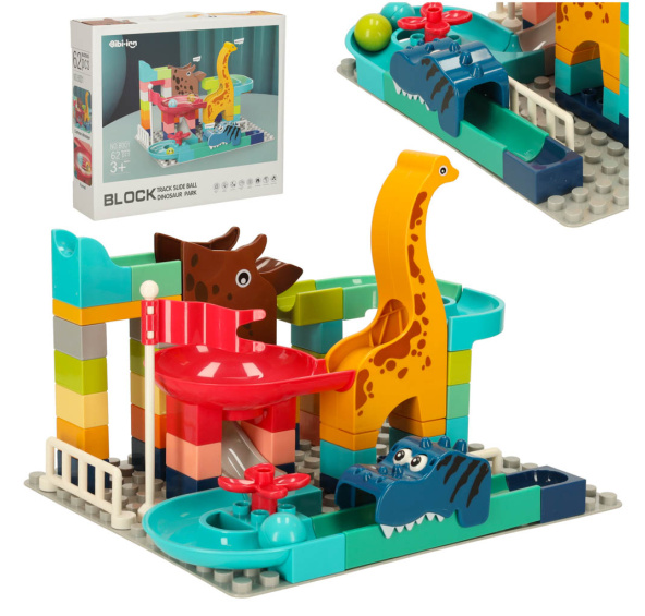 Sada se skládá z 58 kostek, ze kterých si vaše dítě může postavit vlastní kuličkovou dráhu! Dílky lze libovolně kombinovat a vytvářet vlastní nápadité kuličkové dráhy, nebo se inspirovat krabicí a postavit dráhu jako na fotografii. Součástí sady jsou tři kuličky v různých barvách, které se budou kutálet po vytvořených drahách.