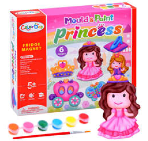 Jedná se o skvělou sadu pro kreativní hru, ze které si můžete vyrobit magnetky na ledničku ve tvaru královny, princezny, kočáru, koruny, motýla a střevíčku. Dítě si musí odlitek samo připravit a poté jej namalovat podle svých představ.