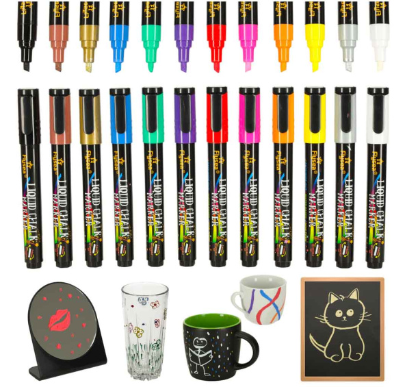 ● multifunkční - ideální křídové popisovače na bílé tabule, sklo, sklo, keramiku, plast a zrcadla