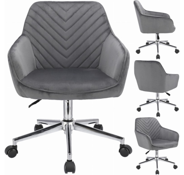 Elegantní kancelářské křeslo potažené měkkým sametem, spojující moderní design s výjimečným komfortem. Regulace výšky a 360stupňová rotace zajišťují pohodlí při práci.Solidní základna na pěti kolečkách zaručuje stabilitu a mobilitu. Ideální do kanceláří a domácích pracoven, dodávající prostoru styl a třídu.