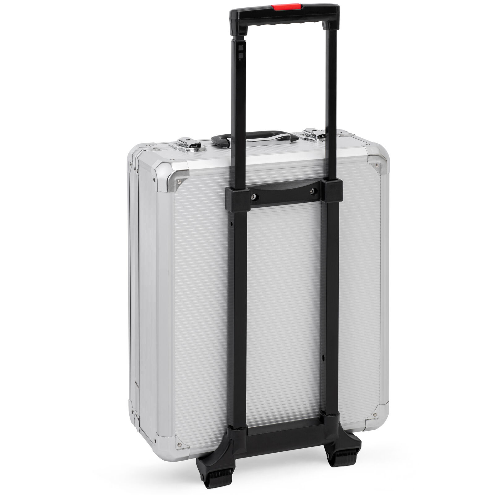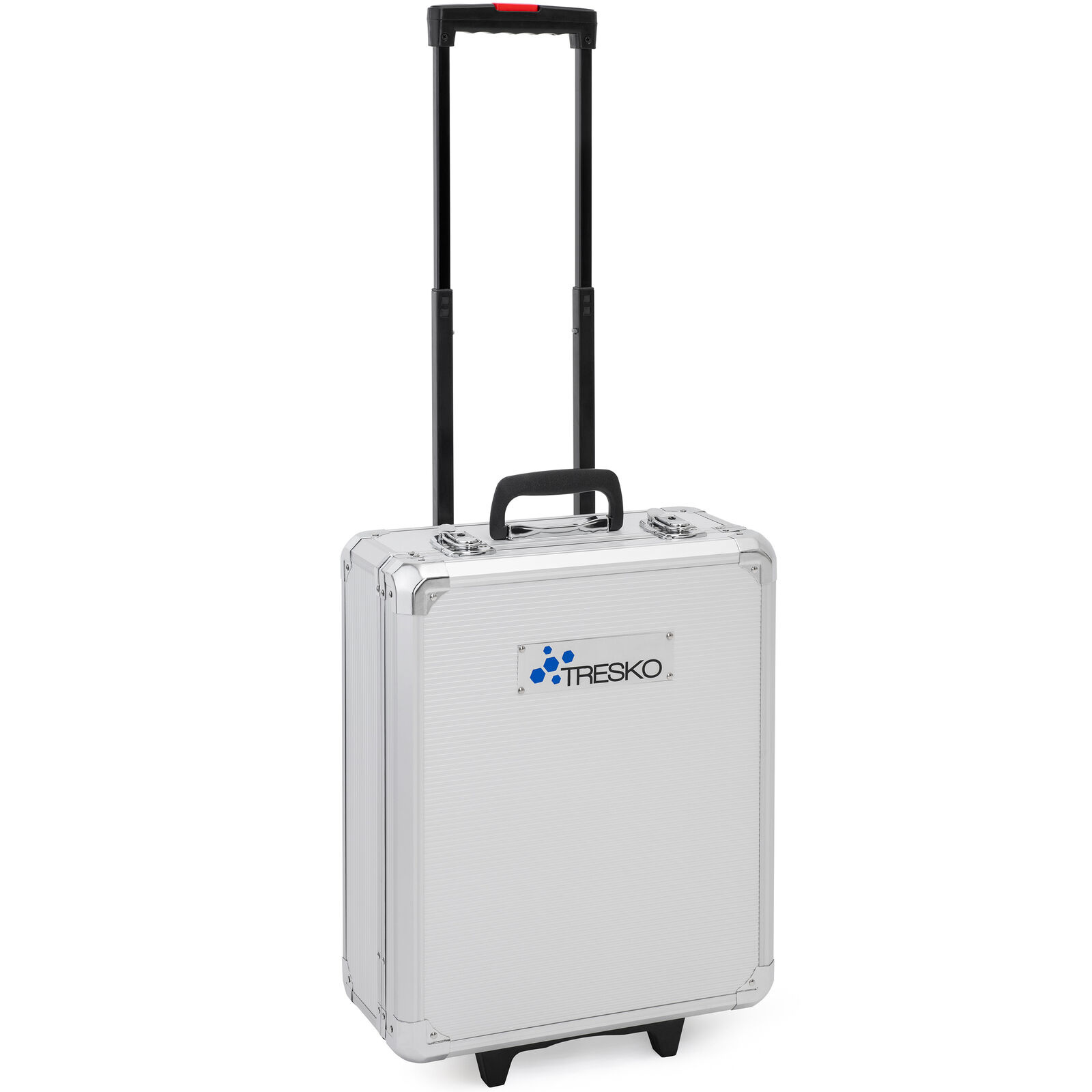 Veškeré vybavení je uloženo v hliníkovém kufru, který je zespod osazen kolečky pro snadnější manipulaci. Samozřejmostí je i teleskopické madlo, které můžete vytáhnout v případě potřeby a bez námahy kufr s nářadím přemístit jinam.