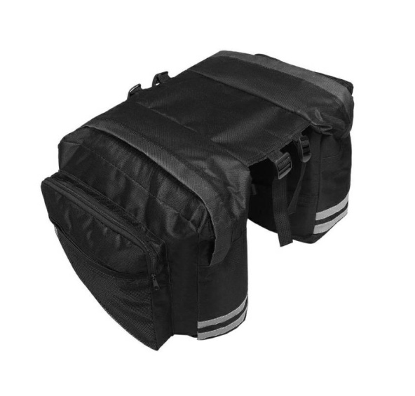 Taška montovaná na zadní nosič kola o objemu cca. 20l, vyrobená z materiálu odolného vůči vodě. Brašna je velká a prostorná, bez obtíží pojme nejpotřebnější nástroje, oblečení, mapy nebo zásobu jídla. Připevněná k zavazadlovému prostoru popruhy s přezkami. 2 prostorné hlavní komory a 4 menší umožňují sbalit do tašky mnoho věcí, komory jsou uzavíratelné na zip. Navíc na obou stranách jsou síťované kapsy. Na zadní straně brašny se nacházejí reflexní pásky zvyšující bezpečnost jízdy. Materiál: polyesterová tkanina rozměry jedné brašny: cca.12x34x32cm Počet kusů. na paletě: 500