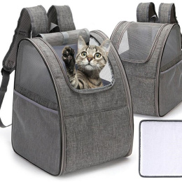 Pohodlný transportní batoh pro kočky a psy. Batoh má četné otvory v horní a boční části, což zajišťuje dobrou ventilaci a zvyšuje komfort. Zvíře během přepravy má zajištěno pohodlí a bezpečnost. Vstupní otvor zepředu uzavíratelný na zip. rozměry batohu 34x28x42cm