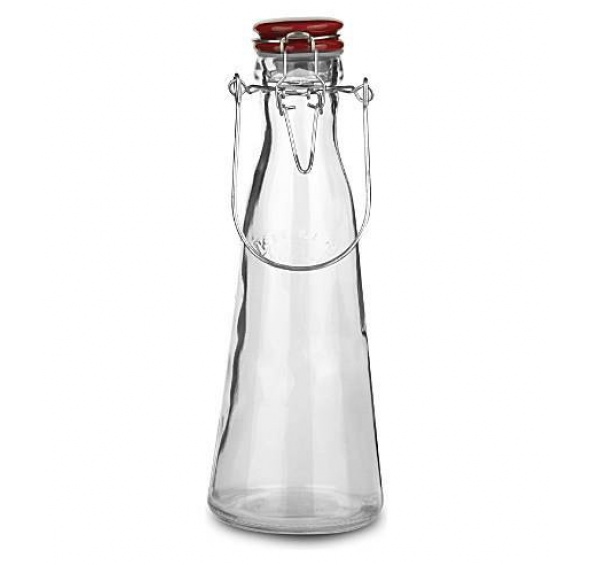 Retro láhev na mléko, sirupy i čaje. Objem 0,5l. Retro láhev s praktickým kovovým držadlem je vhodná na servírování nejrůznějších nápojů z vody, mléka, nebo třeba ledového čaje. Lze ji ale použít třeba i jako netradiční vázu. Láhev má keramický uzávěr a klip z pozinkovaného kovu.