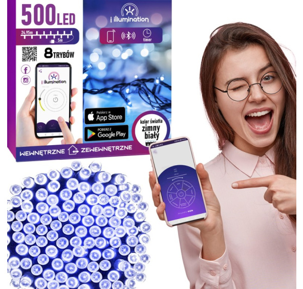 500LED LIGHTS s inovativním ovládáním - přes telefon! pro vnitřní i venkovní použití SVÍTIDLA PLNÁ INOVACÍ SVÍTIDLA OVLÁDÁTE V APLIKACI na svém chytrém telefonu nebo měníte efekty ručně (na zdroji) zdroj má vestavěnou paměť funkcí Bluetooth na poslední zvolený režim - která funkce je vaše oblíbená? Skvělé! Napájecí zdroj si pamatuje poslední zvolenou možnost ČASOVAČ - nastavte čas zapnutí/vypnutí světel 8 REŽIMŮ! vyzkoušejte aplikaci - stáhněte si ji zdarma z obchodu Google Play a App Store - hledejte aplikaci iillumination, která vám umožní ovládat až 6 sad světel! bARVA: STUDENÁ BÍLÁ Film zobrazující fungování světel: https://bit.ly/3qFR5FF ovládání aplikace - pohodlí a mnoho možností! zapínání/vypínání světel prostřednictvím aplikace nastavení doby svícení (čas zapnutí/vypnutí) výběr režimu svícení - na výběr je až 8 režimů nastavení jasu světel změna rychlosti animace 8 REŽIMŮ SVÍCENÍ Můžete je měnit pomocí tlačítka na napájecím adaptéru - nebo prostřednictvím aplikace Variabilní režim (náhodná kombinace) Vlnový režim Sekvenční režim Režim pomalého svícení Režim blikání #1 (záblesk) Režim pomalého vypínání Režim blikání #2 (záblesk) Režim nepřetržitého svícení Na vánočním stromku, doma nebo na zahradě? - volba je na vás TECHNICKÉ PARAMETRY vnitřní i venkovní použití Počet LED diod: 500 ks. Stupeň krytí: IP 44 Barva světla: studená bílá Hmotnost: 730 g Celková délka: 29,95 m Bluetooth: standardní 4.0, třída: 1 Rozteč LED: 5 cm Délka napájecího kabelu: 500 cm Napájecí napětí: 220 V Napájení: 31 V Maximální výkon: 3,6 W Krok 1.Světýlka zavěsíte na vánoční stromek / na dům / na fasádu - kamkoli si budete přát. Krok 2.Zapojíte elektřinu. Krok 3.Aplikaci a osvětlení si stáhnete z obchodu Google Play nebo AppStore. Krok 4.Světla připojíte k telefonu prostřednictvím "Nastavení" v aplikaci. Krok 5.V aplikaci nastavíte čas, režim provozu nebo intenzitu svícení. Krok 6.Užívat si Vánoce v záři vánočního stromku! Veselé Vánoce!