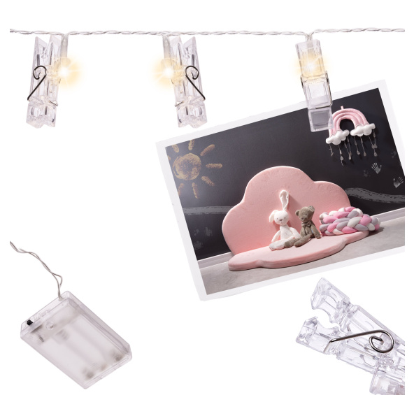 Věnec s klipy LED je moderní verzí tradičních foto rámečků. Můžete ji zavěsit kamkoli a tvarovat ji, jak se vám zlíbí. díky 3 metrům kabelu můžete ve svém pokoji vytvořit krásnou dekoraci.