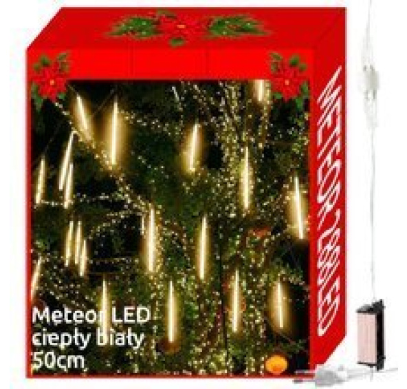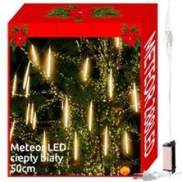 - SPECIFIKACE - typ osvětlení; VEDENÝ; barva světla: teplá bílá; počet meteorů: 8; délka 1 meteoru: 50cm; počet LED: 288; barva vedení: transparentní; třída vodotěsnosti: IP44; napájení: elektrická síť; výkon: 3,5W; napětí: 230V / 7V; celková délka: 4,5 m; hmotnost: 0,15 kg; hmotnost v balení: 0,2 kg