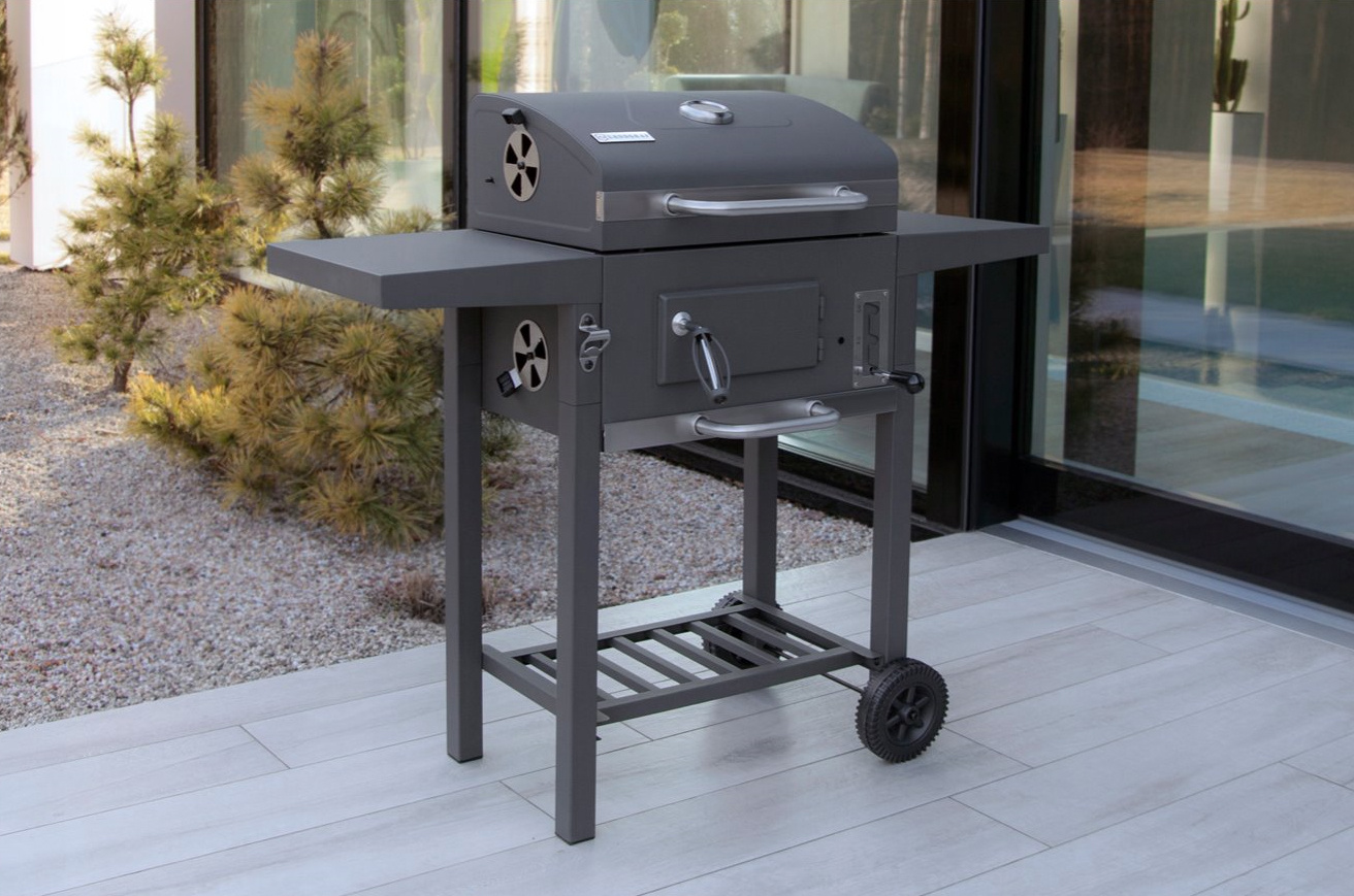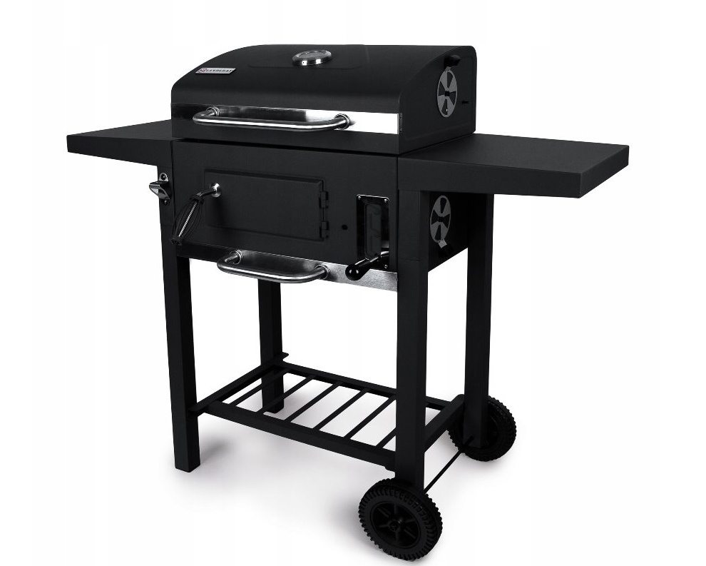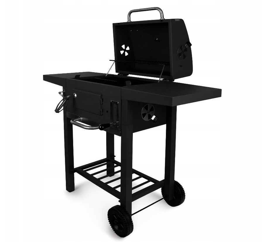 Gril můžete použít na grilování i bez víka jako klasický gril. Pomocí dvou plastových koleček dopravíte gril snadno na potřebné místo na vaší zahradě či terase.