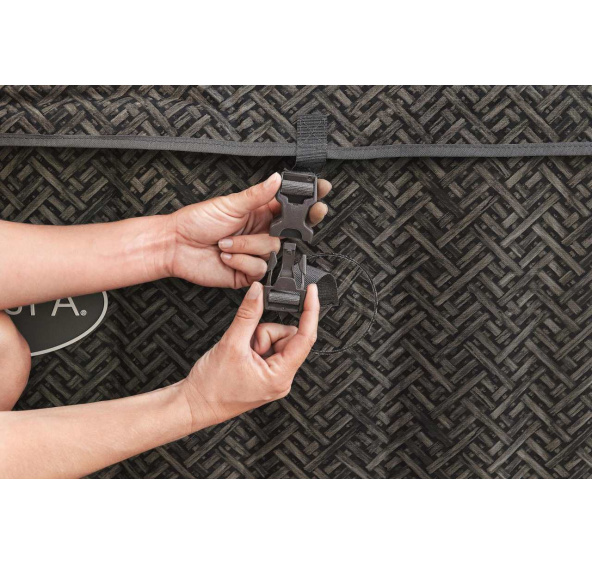 - Uklidňující systém AirJet™ (180 vzduchových trysek) - Systém úspory energie (časovač kontrolující systém vytápění) - Integrovaný systém filtrování vody - Dávkovač ChemConnect™ zajišťuje a udržuje zdravou a čistou bazénovou vodu. Zajišťuje stabilní úroveň chloru potřebnou pro správnou chemickou rovnováhu - Měkká, izolovaná podlaha s pohodlným vypouštěcím ventilem - Spa poskytuje komfortní masáž, - Zesílený kryt se sponami a vestavěnou vzduchovou komorou pro lepší izolaci, - Dřevěný vzhled na vnější části a vinylovém krytu bazénu, - Dvě snadno zvednutelné rukojeti usnadňují přenášení prázdného spa, - Pumpování spa pomocí spa pumpy, - Další vypouštěcí ventil pro rychlé vypuštění vzduchu ze spa, když ho uživatel připravuje k uskladnění, - Digitálně řízená pumpa s měkkým dotykovým ovládacím panelem, - Pumpa je vybavena zařízením kontrolujícím proud – proud nepřesahuje 10 mA, - Systém detekce uzemnění pro zajištění lepší bezpečnosti uživatele, - Systém Freeze Guard TM chránící před chladem umožňuje užívat si spa po celý rok, - možnost ovládání z telefonu (BESTWAY SMART HUB APP) - Funkce automatického ohřevu (automatický ohřev se spustí při 6 ℃ a skončí při úrovni 10 ℃) zabraňuje zamrznutí vody, |