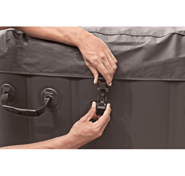 - Uklidňující systém AirJet™ (180 vzduchových trysek) - Systém úspory energie (časovač kontrolující systém vytápění) - Integrovaný systém filtrování vody - Dávkovač ChemConnect™ zajišťuje a udržuje zdravou a čistou bazénovou vodu. Zajišťuje stabilní úroveň chloru potřebnou pro správnou chemickou rovnováhu - Měkká, izolovaná podlaha s pohodlným vypouštěcím ventilem - Spa poskytuje komfortní masáž, - Zesílený kryt se sponami a vestavěnou vzduchovou komorou pro lepší izolaci, - Dřevěný vzhled na vnější části a vinylovém krytu bazénu, - Dvě snadno zvednutelné rukojeti usnadňují přenášení prázdného spa, - Pumpování spa pomocí spa pumpy, - Další vypouštěcí ventil pro rychlé vypuštění vzduchu ze spa, když ho uživatel připravuje k uskladnění, - Digitálně řízená pumpa s měkkým dotykovým ovládacím panelem, - Pumpa je vybavena zařízením kontrolujícím proud – proud nepřesahuje 10 mA, - Systém detekce uzemnění pro zajištění lepší bezpečnosti uživatele, - Systém Freeze Guard TM chránící před chladem umožňuje užívat si spa po celý rok, - možnost ovládání z telefonu (BESTWAY SMART HUB APP) - Funkce automatického ohřevu (automatický ohřev se spustí při 6 ℃ a skončí při úrovni 10 ℃) zabraňuje zamrznutí vody, |