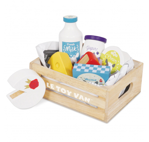 Nakupujte chytře! Dřevěná přepravka obsahuje čerstvé mléko, kostku másla, sklenici jogurtu, krabičku smetany a 3 chutné sýry pro všechny milovníky mléčných výrobku. Perfektní doplněk dětských trhových stánků i kuchyněk. Hodí s k ostaním bedýnkám Le Toy Van, v kterých najdete například ryby, zeleninu, ovoce, maso nebo vejce. Hlavní vlastnosti: Dřevěná přepravka se sýrem a mléčnými výrobkyKompatibilní s ostatními produkty Honeybake – vybavení kuchyně, prodejní stánkyHračka podporuje krativitu, představivost, pomáhá s rozvojem řeči a sociálních dovednostíVyrobeno z odolného a udržitelného kaučukového dřeva – dlouhotrvající zábava i starost o naši planetuMalováno netoxickými barvami, testováno dle nejpřísnějších standardů Honeybake kolekceHračky v této kolekci jsou vhodné k objevování, pomohou dětem s rozvojem představivosti, sociálních a verbálních dovedností a kognitivních funkcí. Tradiční design s moderními detaily děti jistě bude bavit. Honeybake je kolekce Le Toy Van, která vyhrála nejvíce ocenění a to za design, kvalitu, bezpečnost a také za vzdělávací a herní hodnotu.