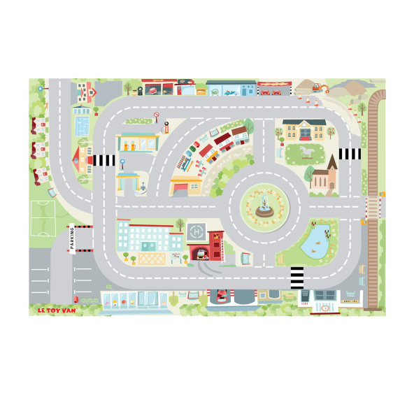 Pojeďme do města! Na tomto hracím koberci je toho tolik k objevování. Vyroben z vysoce kvalitního plyše, s bezpečnou protiskluzovou spodní stranou, se tento extra měkký koberec stane středem hravého světa dětí. Děti s tímto podlahovým doplňkem jistě povolí uzdu představivosti, má ilustraci městečka, které mohou děti prozkoumat skrz na skrz. Najdou v něm hasičskou stanici, garáž, nemocnici, radnici, bytovou i obchodní oblast, a mnoho dalšího. Děti si jistě při hře vymyslí mnoho vlastních příběhů. Přidejte autíčka a garáže z dílny Le Toy Van k přidané herní hodnotě! Hlavní vlastnosti: vysoce kvalitní plyšprotiskluzová spodní stranačištění pouze houbičkouinspiruje k sociální a představivé hřevyrobeno eticky, s láskoutestováno dle nejpřísnějších standardů