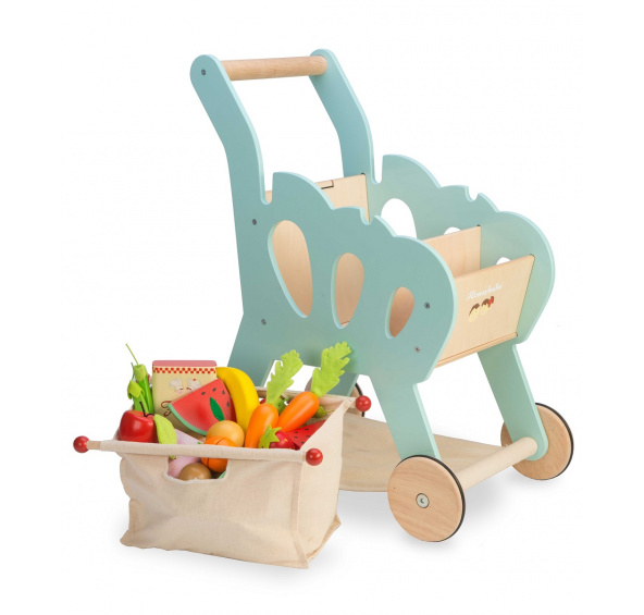 Jste připraveni na nákupy? Stylový dřevěný nákupní vozík děti doprovodí při dobrodružství na nákupech. Koš je rozdělen na 2 části, vespod je také textilní přihrádka. Na malou tabulku napište křídou nákupní seznam, nákup zabalte do oddělitelné textilní tašky. Potravinové produkty si můžete koupit zvlášť, nakoukněte do naší nabídky potravinových sad. Malovaná pěknými pastelovými barvami, zaoblené hrany pro bezpečí dětí, vyrobena z udržitelného dřeva, tato hračka je odolná a vydrží vám opravdu dlouho. Podpoří dětí v brzkém rozvoji, v sociálních dovednostech, procvičí jejich zručnost a jemnou motoriku. Kompatibilní s produkty z řady Honeybake od Le Toy Van. Hračky s účelemVšechny hračky firmy Le Toy Van jsou vyrobeny s cílem – aby dlouho vydržely. Designovány s láskou zkušenými řemeslníky za použití etických praktik a udržitelných materiálů, které jsou laskavější k naší planetě. Hlavní vlastnosti: vyrobeno eticky z udržitelného dřevakompatibilní s ostatními produkty z řady Honeybakehračka vyhrála oceněnítestováno dle nejpřísnějších standardůmalováno netoxickými barvami na bázi vodytrénuje jemnou motoriku a zručnostinspiruje ke kreativní a představivé hře Ocenění hračky:Loved By Parents Best Wooden Toy 6+ Gold Award 2017Loved By Parents Best Toy Design Platinum Award 2017Good Toy Guide Recommended Honeybake kolekce: Hračky v této kolekci jsou vhodné k objevování, pomohou dětem s rozvojem představivosti. Tradiční design s moderními detaily děti jistě bude bavit. Honeybake je kolekce Le Toy Van, která vyhrála nejvíce ocenění a to za design, kvalitu, bezpečnost a také za vzdělávací a herní hodnotu. Značka a certifikát FSC® (Forest Stewardship Council) zaručuje, že dřevo, ze kterého byl produkt vyroben, nebylo vytěženo nelegálně a pochází z lesů obhospodařovaných šetrným či přírodě blízkým způsobem, ve kterém jsou dodržovány přísné environmentální a sociální požadavky. Značka FSC® na výrobku znamená, že svým nákupem pomáháte chránit lesy a podporujete šetrné, odpovědné či přírodě blízké hospodaření, díky kterému jsou naše lesy stabilnější, zdravější, mají přirozenou druhovou skladbu a lépe odolávají negativním následkům klimatických změn.