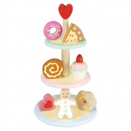 Naservírujte luxusní hostinu s tímto elegantním 3 patrovým talířem se 7 detailními zákusky. Tři patra jsou jinak barevná, použity jsou jemné pastelové barvy. Každý ze zákusků je vyroben z pevného dřeva a má zaoblené hrany. Malováno netoxickými pastelovými barvami na bázi vody. Najdete mezi nimi cupcake, kus dortu, donut, sušenku a perníček. Tato kvalitní hračka děti inspiruje k hodinám kreativní hry, děti mohou pohostit svou návštěvu sladkostmi. Perfektní doplněk k Le Toy Van čajovému vozíku TV324. Hračky s účelemVšechny hračky firmy Le Toy Van jsou vyrobeny s cílem – aby dlouho vydržely. Designovány s láskou zkušenými řemeslníky za použití etických praktik a udržitelných materiálů, které jsou laskavější k naší planetě. Hlavní vlastnosti: vyrobeno eticky z udržitelného dřevatestováno dle nejpřísnějších standardůmalováno netoxickými barvami na bázi vodyinspiruje ke kreativní a představivé hřekompatibilní s ostatními produkty z řady Honeybake Honeybake kolekce: Hračky v této kolekci jsou vhodné k objevování, pomohou dětem s rozvojem představivosti, sociálních a verbálních dovedností a kognitivních funkcí. Tradiční design s moderními detaily děti jistě bude bavit. Honeybake je kolekce Le Toy Van, která vyhrála nejvíce ocenění, a to za design, kvalitu, bezpečnost a také za vzdělávací a herní hodnotu.