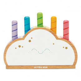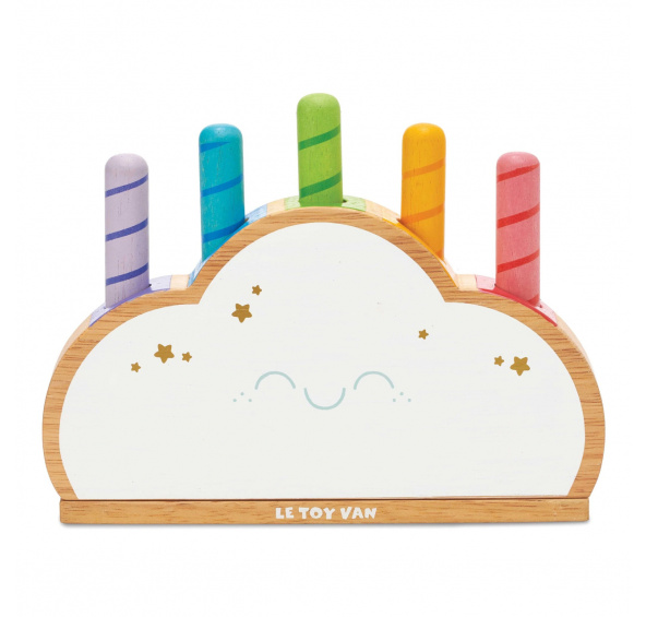 Puk! Dřevěná hračka ve tvaru mraku skrývá otvory s pružinami, do kterých vložíte tyčinky. Tyčinky jsou barevné a mají 3 rozdílné délky. Zatlačte je, pusťte a dívejte se, jak vyskakují! Hračka je vyrobena z kaučukového dřeva, dekorována pastelovými barvami na bázi vody, s ručně malovanými detaily. Zkuste tyčinky zatlačit – pustit – chytit, zvládnete to? Hlavní vlastnosti: Mrak z pevného dřeva s pružinovým systémemPět barevných vyskakovacích „lízátek“Barevný design, který pomáhá s učením barev a povzbudí dětskou představivostVyskakovací hračka podporuje školu hrou – rozvíjí zručnost a sebejistotu v zábavném prostředíVyrobeno z odolného a udržitelného kaučukového dřevaDekorováno netoxickými barvami, testováno dle nejpřísnějších standardů Petilou kolekceKolekce pro nemluvňata a batolata od Le Toy Van obsahuje hlavně hmatové hračky, které mají nejmenším posloužit také jako učební prostředky. Kolekce je inspirována přírodou kolem nás a je navržena tak, aby rozvíjela smysly dětí pomocí rozdílných zvuků, textur, tvarů a hmotností. Děti tak od malička zapojí všechny své smysly.