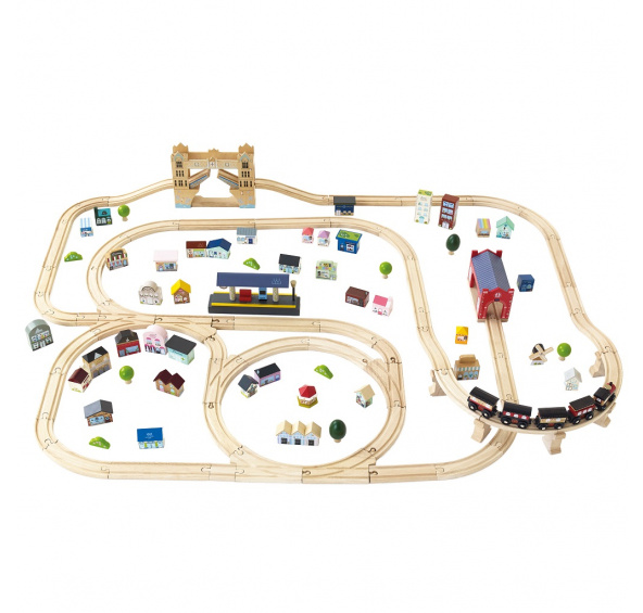 Tato dřevěná vláčkodráha míří do Londýna! Ať představivost dětí volně proudí, díky vláčku poznají celé město a jeho významná místa. Hračka se skládá ze 120 dřevěných dílků, má detailní barevné ilustrace. Zastavte se v kadeřnickém salónu, zverimexu nebo v pizzerii! Vagóny vláčku mají zabudované magnety, lze je jednoduše spojit. Dále v balení najdete koleje, nádraží, mnoho budov a také zvedací most. Tradiční hračky děti vzdělávají formou hry. Vyrobeno z odolného a udržitelného dřeva, malováno netoxickými barvami na bázi vody. Ekologická, bezpečná a interaktivní hračka pro všechny děti. Pomůže také s rozvojem jemné motoriky.Rozšiřte si sbírku o dřevěné vláčky a vláčkodráhy, které jsou kompatibilní s výrobky jiných značek, např. Brio, pro dlouhodobou a unikátní zábavu. Hlavní vlastnosti: v balení 120 dílků – 2 vlaky, koleje, mnoho doplňkůvyrobeno eticky z udržitelného dřevatestováno dle nejpřísnějších standardůmalováno netoxickými barvami na bázi vodypomáhá s rozvojem řeči a sociálních dovednostíinspiruje k představivé hře Auta & stavby: Stavební a motorická kolekce Le Toy Van, která vyhrála mnoho ocenění. Přesněji prozatím přes 15 ocenění za představivá auta a stavební hračky. Podporují dětskou fantazii, jsou ideální k představivé hře, rozvíjí kreativitu a hravě zlepšují dětskou koordinaci ruka‑oko.
