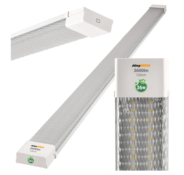 SATURN 36W 3600lm LED panelová lampa pro garáž 120cm s průhledným stínítkem je osvětlovací produkt, který poskytuje jasné, rovnoměrné a energeticky úsporné osvětlení v garáži, dílně nebo jiné místnosti.
