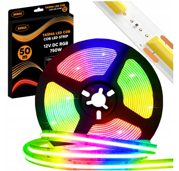 RGB Neon COB 12V LED pásek s délkou 50 metrů a výkonem 15W/m je nejkvalitnější vícebarevné osvětlení, ideální pro dekoraci, ambientní osvětlení a vytváření jedinečných světelných efektů.