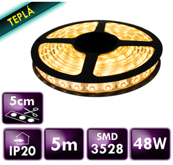 Popis produktu LED pásek - SMD 2835 - 5m - 600/5m - 9,6W/m - IP20 - teplá bílá