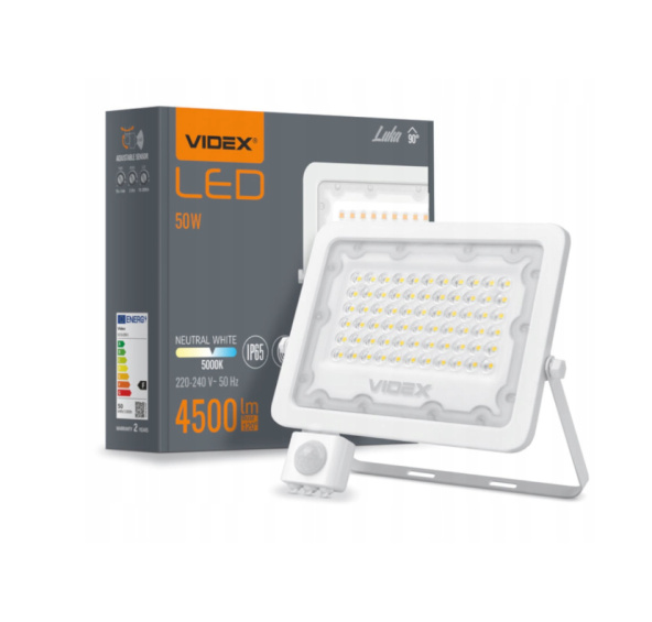 LED reflektor VIDEX s integrovaným snímačem pohybu je světelný zdroj v utěsněném krytu z hliníkové slitiny a polykarbonátovým difuzorem.