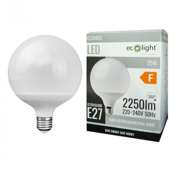 LED žárovka - E27 - 25W - G120 - neutrální bílá