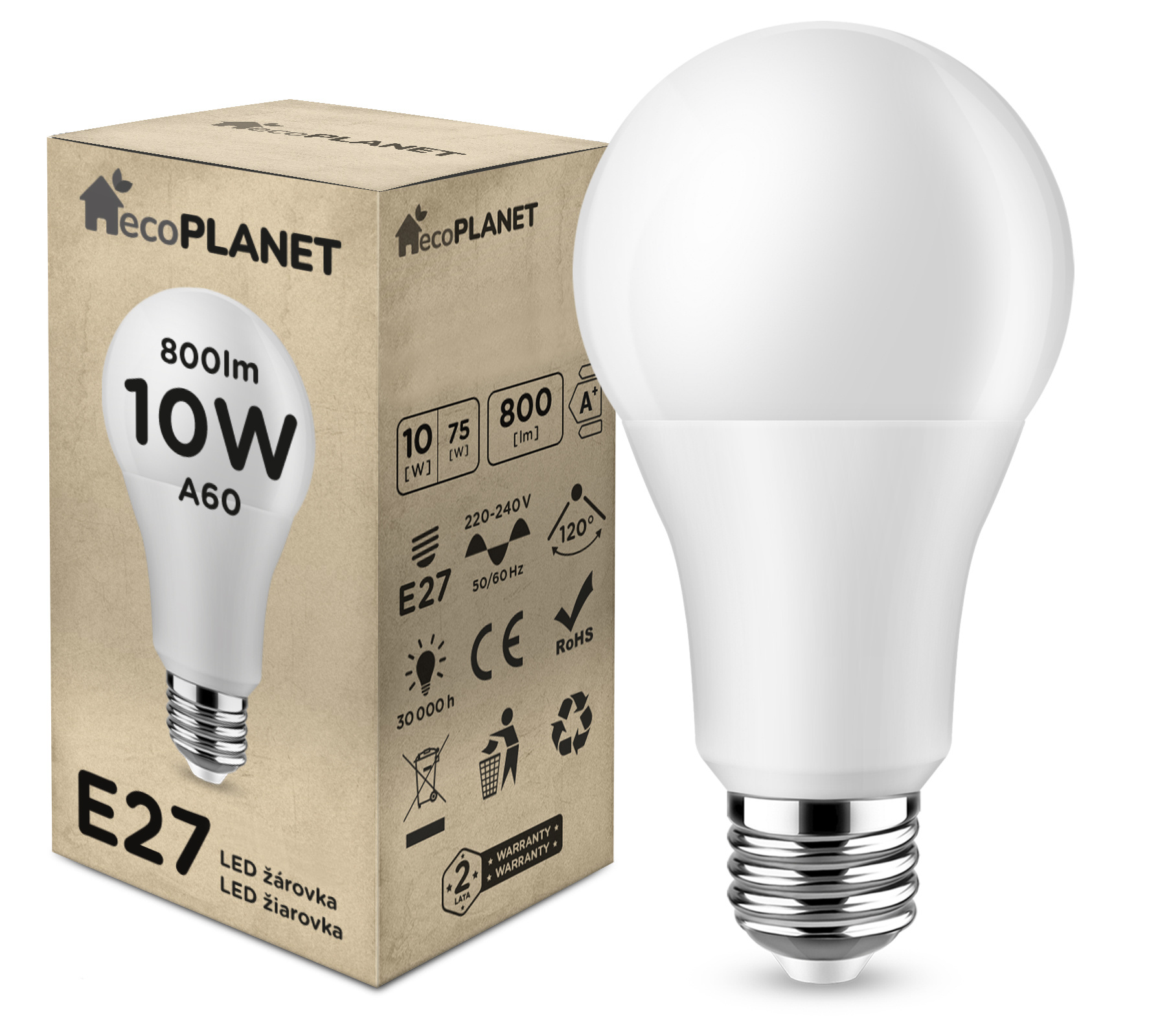 LED žárovka - ecoPLANET - E27 - 10W - 800Lm - neutrální bílá