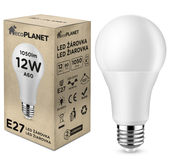 Popis produktu LED žárovka ecoPLANET - E27 - A60 - 15W - 1500Lm - neutrální bílá