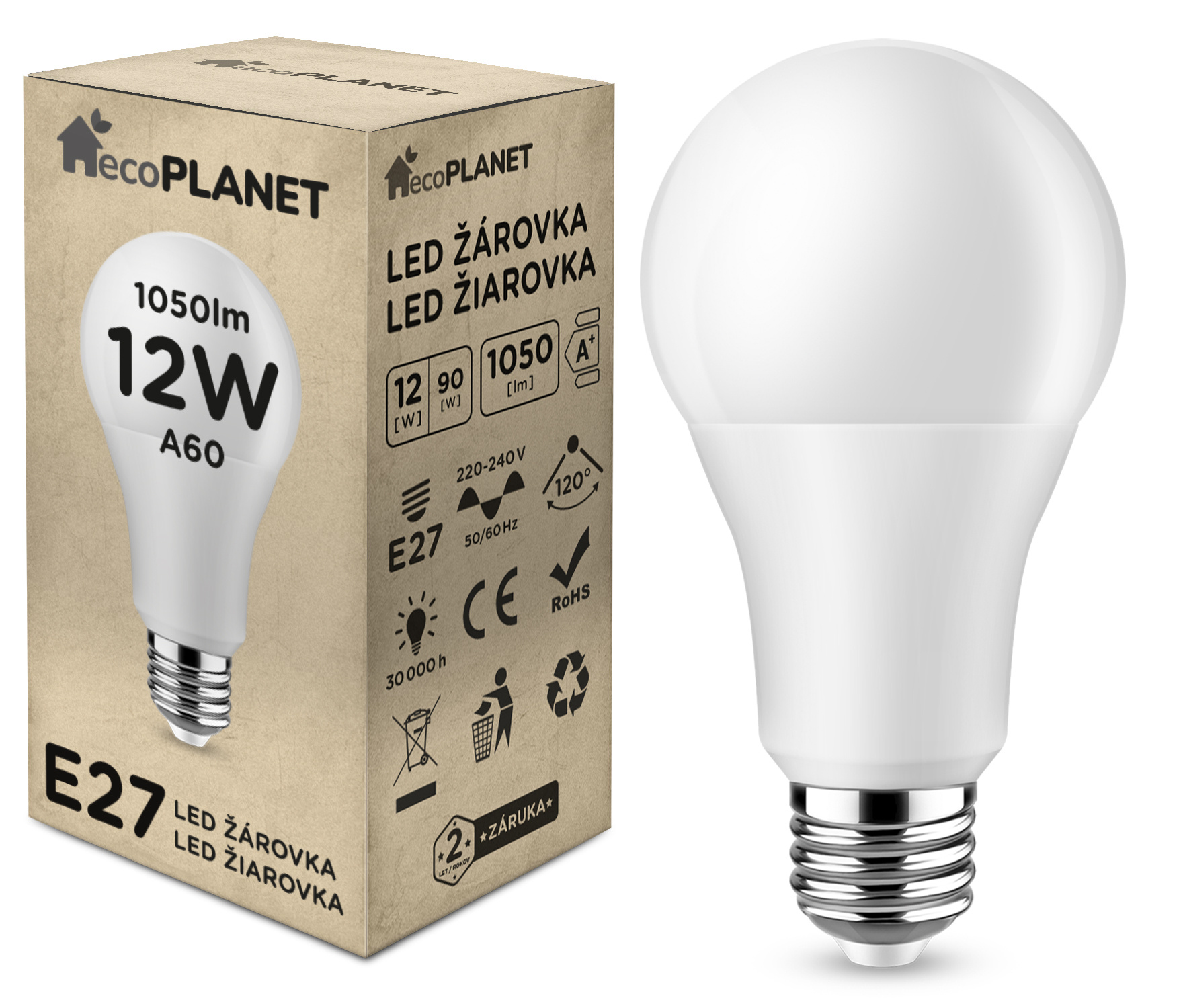 LED žárovka ecoPLANET - E27 - A60 - 15W - 1500Lm - studená bílá