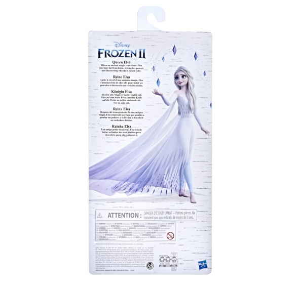 Panenka královny Elsy s krásnými vlasy, se kterou děti mohou prožívat scény z Ledového království 2. Má na sobě svůj oděv královny – bílou róbu, kápi a střevíce.