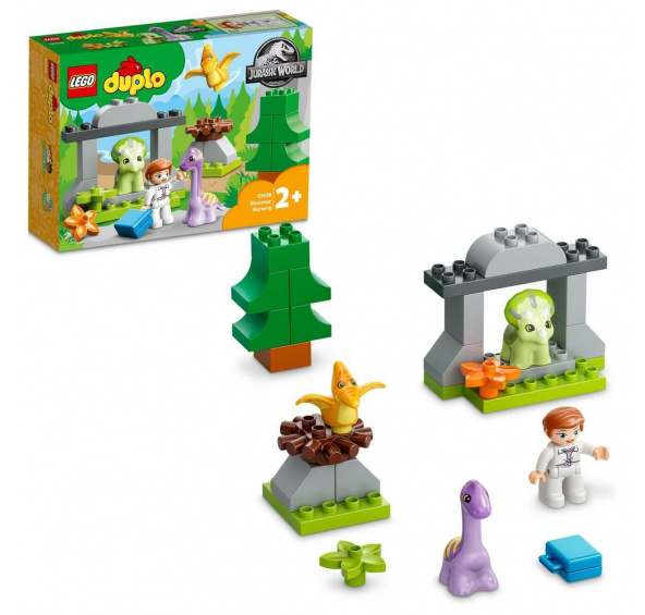 Předškolní milovníky dinosaurů starší 2 let čeká se stavebnicí LEGO® DUPLO® Dinosauří školka (10938) nespočet neomezených dobrodružství. Stavebnice pro děti s roztomilými dinosaury Vaše ratolesti se mohou přidat ke Claire Dearingové z Jurského světa a pomoci jí pečovat o 3 dinosauří mláďata. Stavebnice obsahuje triceratopse v jeskyni, pteranodona v hnízdečku a brachiosaura s dlouhým krkem, který rád okusuje listí ze stromu. Děti si při hraní s dinosaury v jejich přirozeném prostředí osvojí jemnou motoriku a emoční inteligenci. Učení hrou pro malé děti Rodiče mohou se svými ratolestmi sdílet důležité vývojové milníky. Stavebnice LEGO DUPLO dětem nabízejí pořádnou porci zábavy a spoustu možností pro sebevyjádření a získání sebedůvěry.