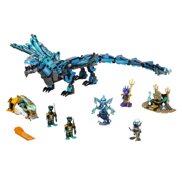 "S touto vysoce propracovanou stavebnicí Vodní drak (71754) si děti mohou přehrávat neuvěřitelné příběhy z televizního seriálu NINJAGO®: Seabound. Působivá figurka draka má pohyblivou hlavu, čelist, nohy, krk, křídla a ocas, který lze použít jako zbraň. Sada je tedy zárukou takřka neomezené zábavy.