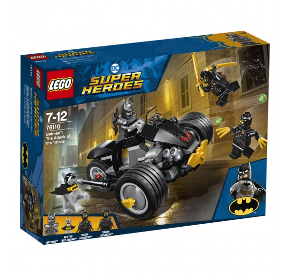 Spoj své síly s Batmanem a jeho psím společníkem Acem a přemozte společně nájemné vrahy Talony v sadě 76110 Batman™: Útok Talonů, která obsahuje Batmanovu motorku s dvojitým vystřelovačem a přípojnými body pro nejrůznější zbraně a dílky, které jsou součástí balení. Tato sada obsahuje 3 minifigurky s různými zbraněmi pro ještě větší zážitek z boje.
